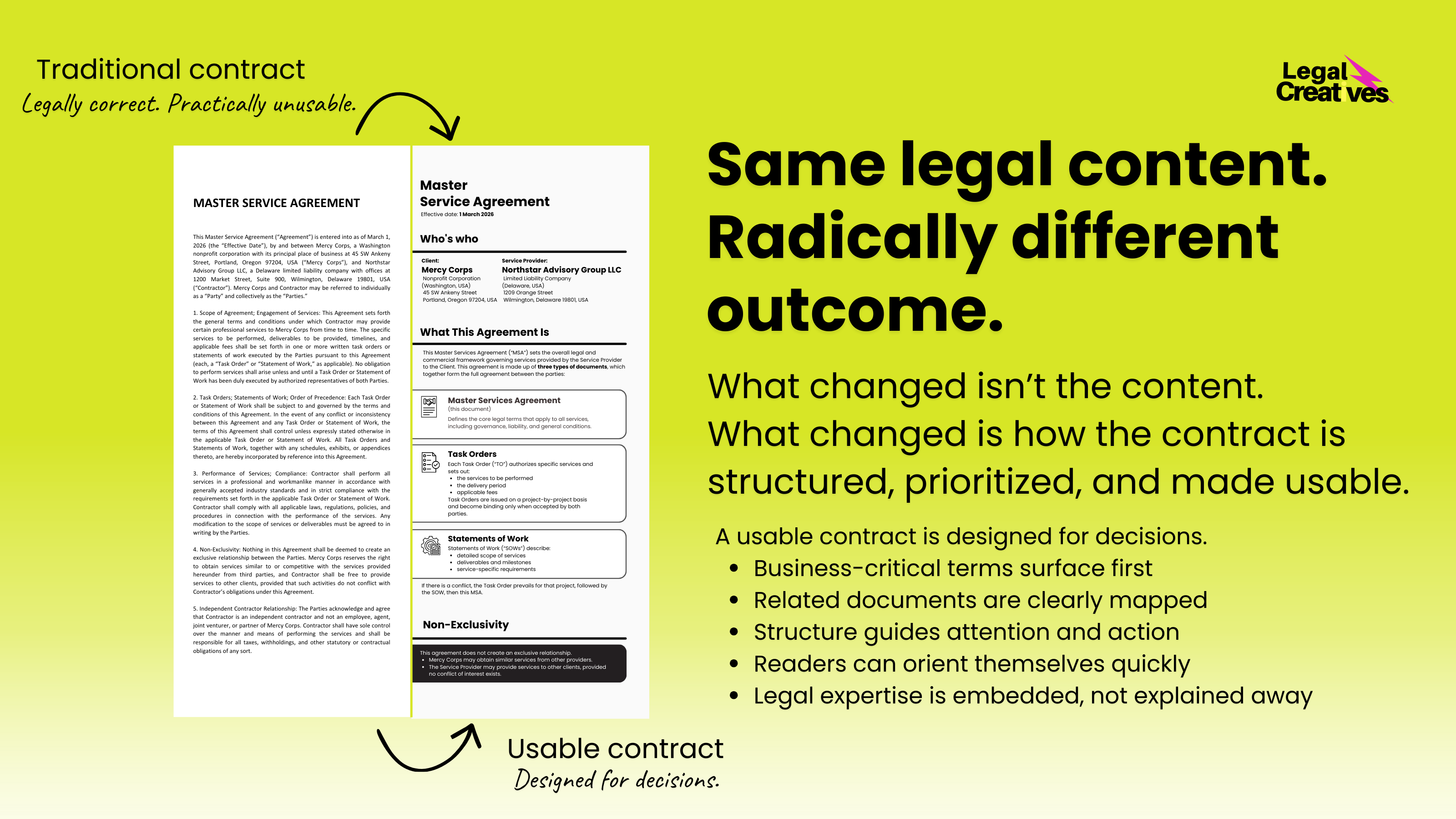 A usable contract is designed around how people interact with it, not just how it’s drafted.