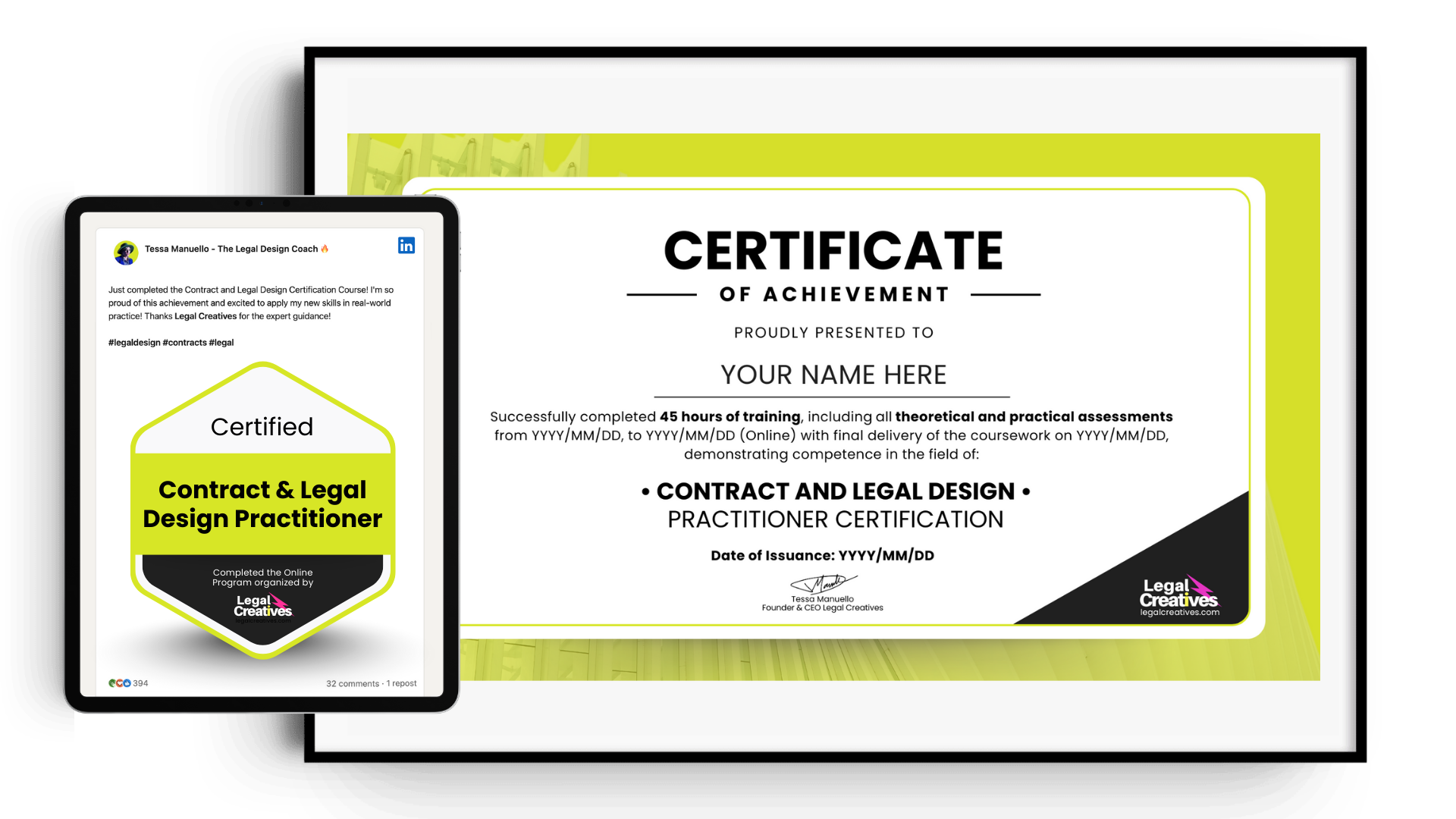 Whether you're leading a legal department, managing contracts, supporting operations, or coordinating cross-functional teams, these tools give you everything you need to implement legal design efficiently and consistently. This is how this program becomes more than a course: it becomes a capability your organization can rely on.