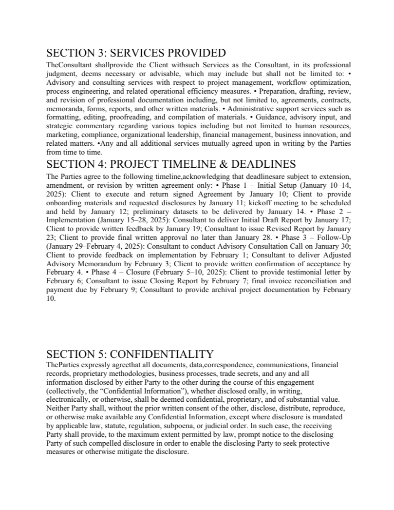 - Information Overload: Payment terms and timelines were buried in dense paragraphs, making it impossible to scan for obligations or deadlines. Â